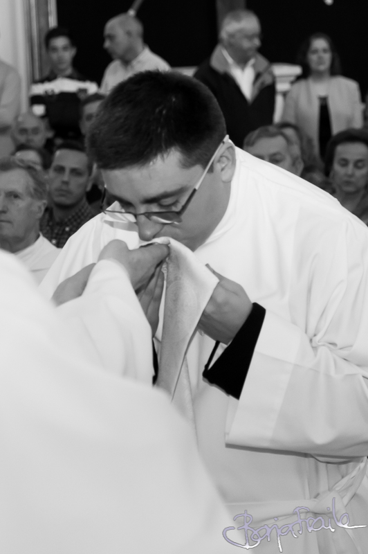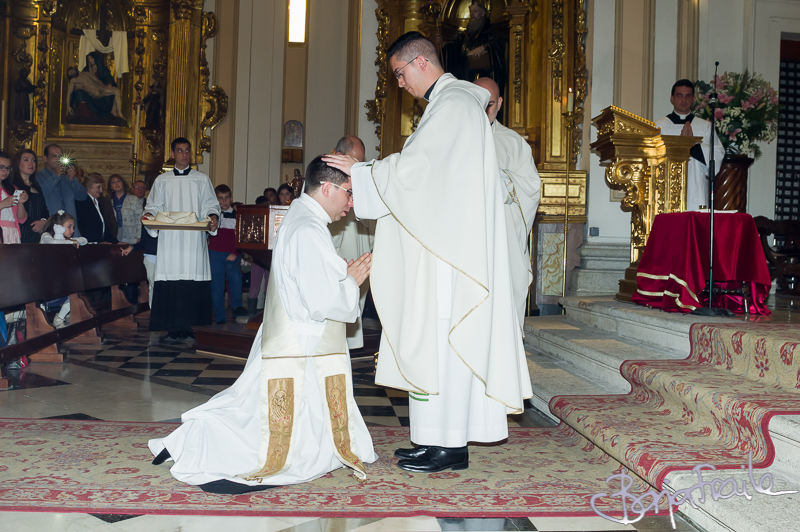 Hace unos días tuve el placer de hacer las fotos a un buen amigo en un día muy especial para él. Hoy por fin, después de una larga espera y algunos vaivenes, nos hemos reencontrado y le he podido entregar las fotos. Una experiencia diferente a bodas y comuniones aunque se siga tratando de hacer fotos dentro de una iglesia. Y es que el rito del Orden Sacerdotal tiene sus peculiaridades. En fin, que a pesar del incienso que tiró por tierra todas mis mediciones previas; de la competencia que me miraba algo molesta; y de incluso alguna pequeña regañina con la que me impidieron hacer alguna de las fotos que llevaba pensadas; a pesar de todo eso, fue un día especial. Muchas gracias Javier ( o Don Javier, o páter o… ¿cómo te tengo que llamar ahora?)